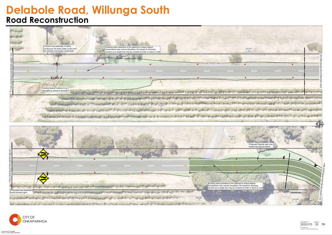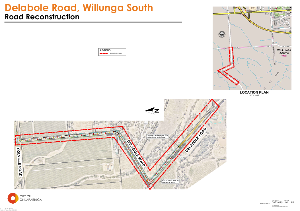 We are planning to reconstruct Delabole Road, Willunga South between Colville Road and 350m past the current end of seal to address significant pavement defects and seal defects, including shape deformation, potholes and edge breaks.