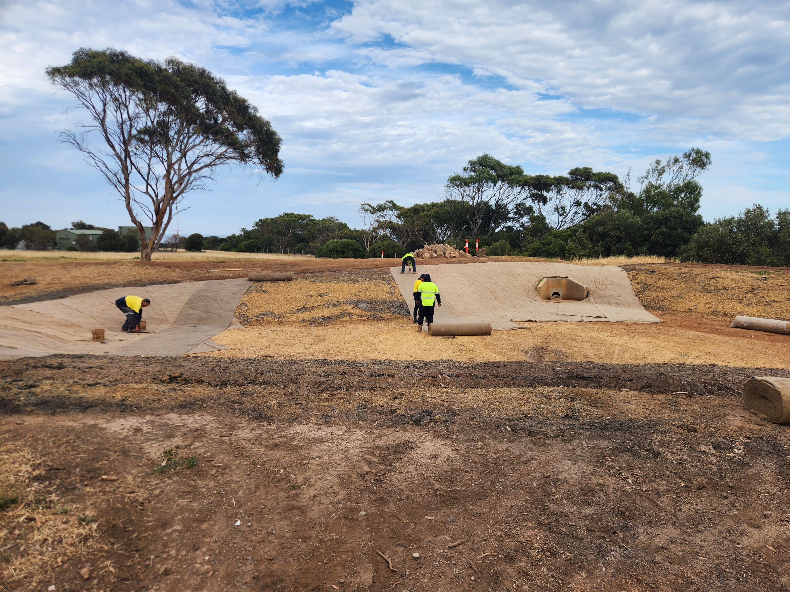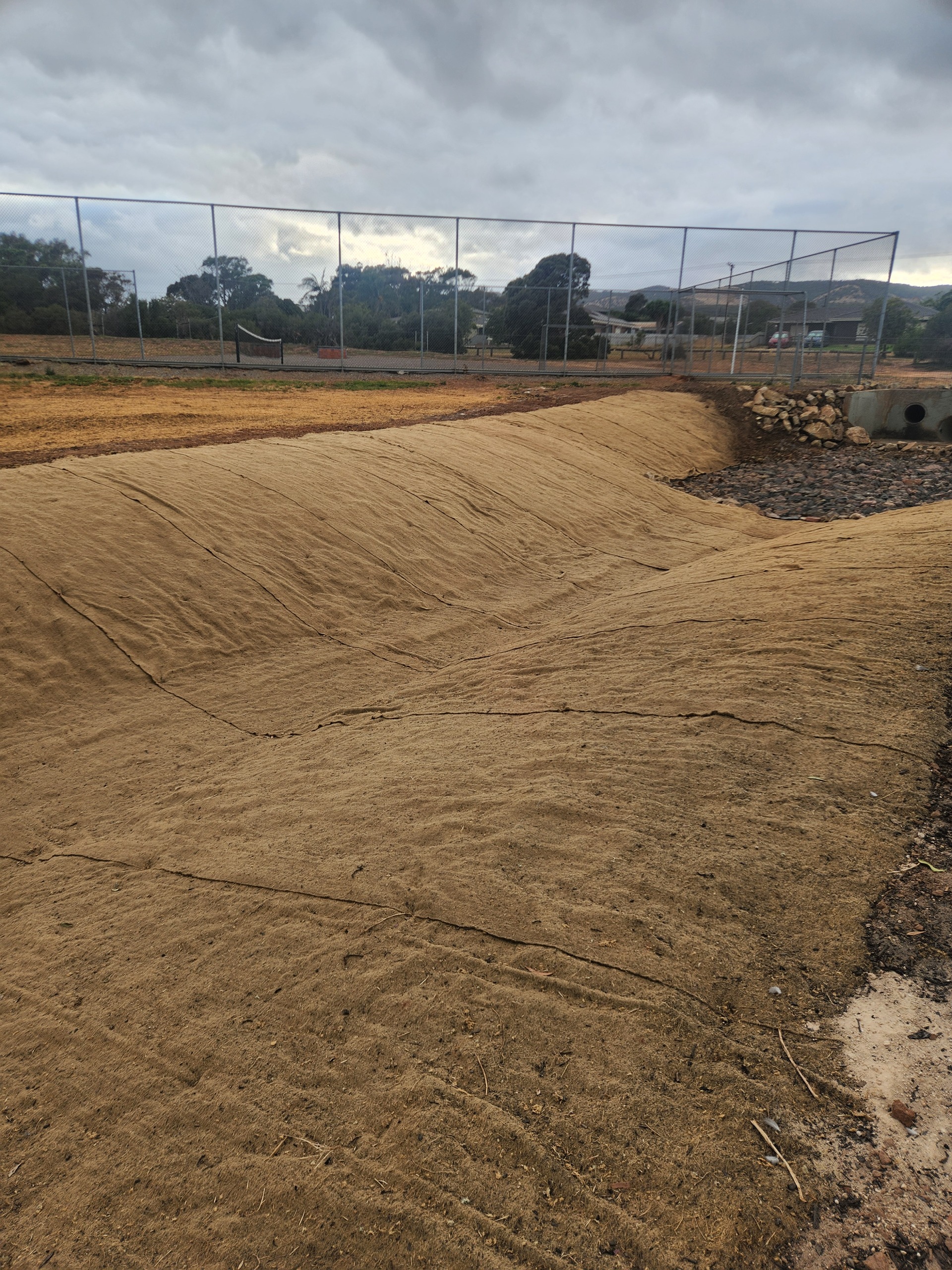We are happy to announce the jute matting has been installed and construction of the basin is now completed.