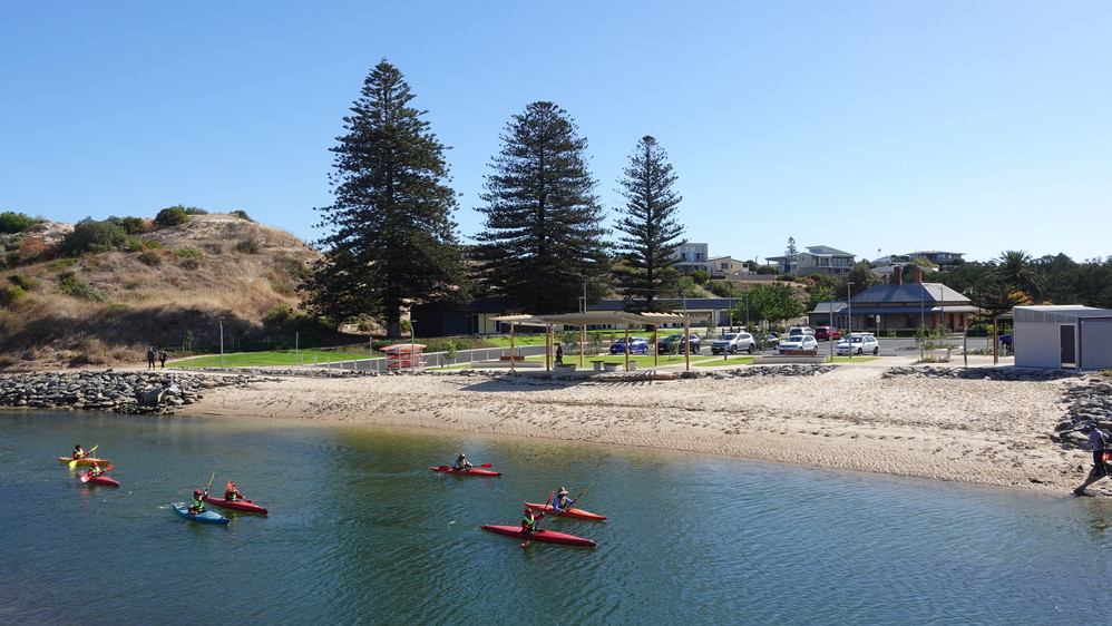 This unique location adjoins the coastal sand dune system and the bank of the Onkaparinga River/Ngangkiparri. Since the early 1930s, it has been a popular community attraction and a hub for aquatic sport and recreational activities.